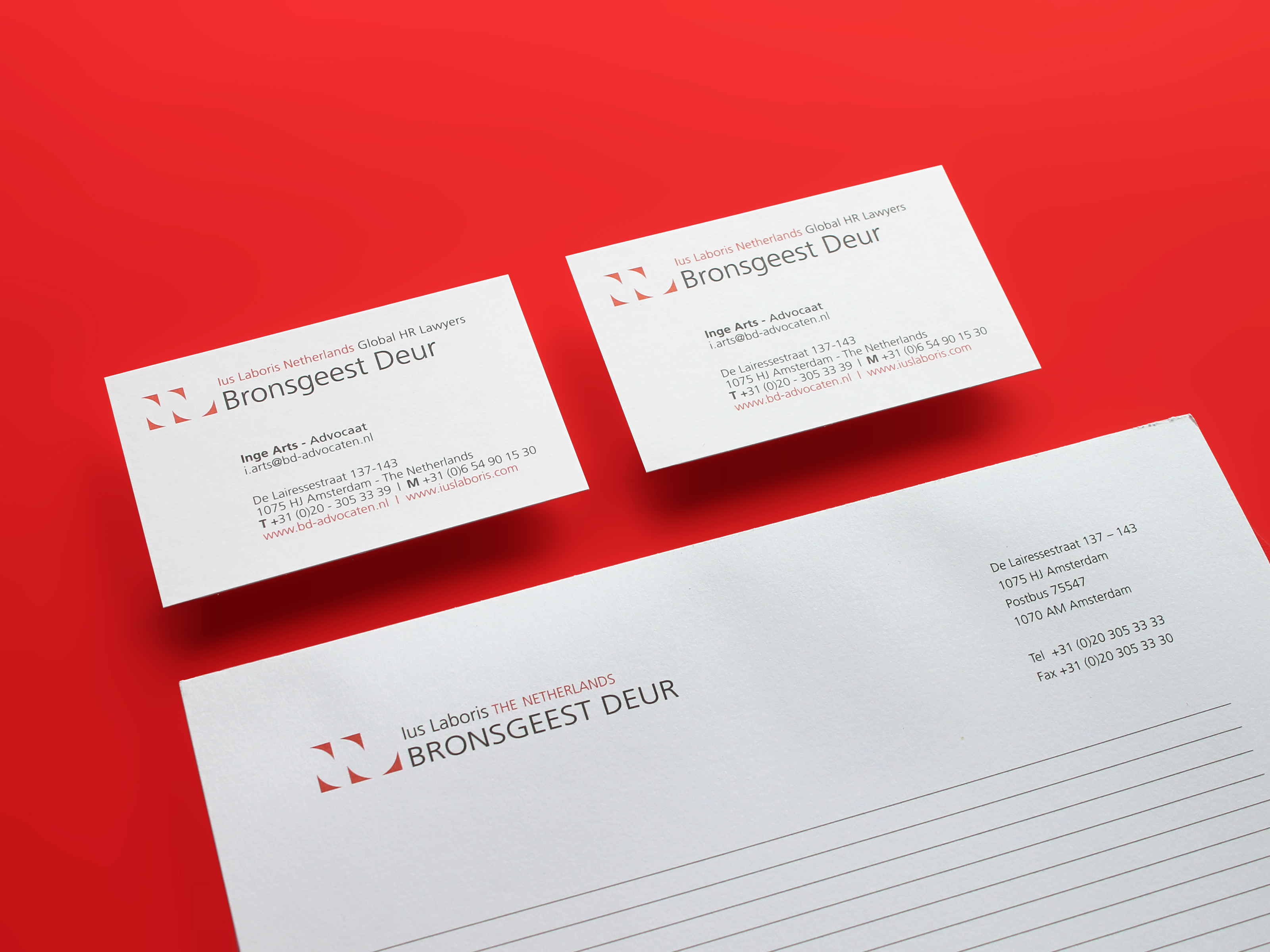 Een advocatenkantoor welke alle facetten beslaat van het Nederlandse arbeidsrecht. Hiervoor maken wij het huisstijldrukwerk (oa het correspondentiepapier, verschillende enveloppen, briefpapier, visitekaartjes, notepad bloks A4).