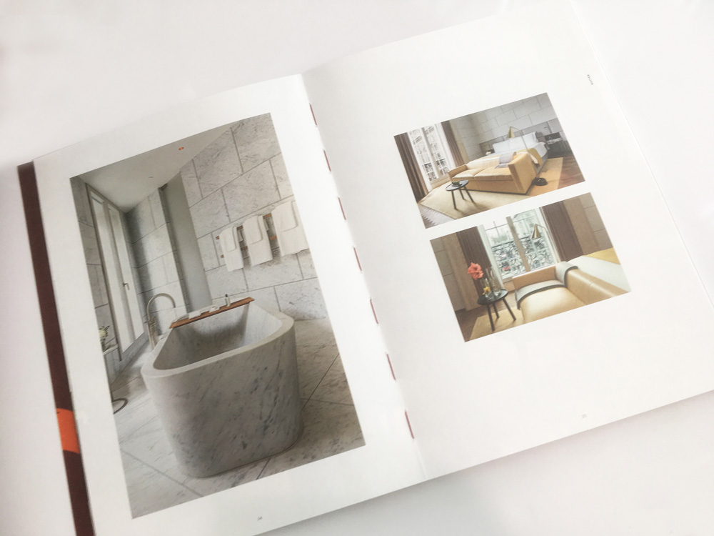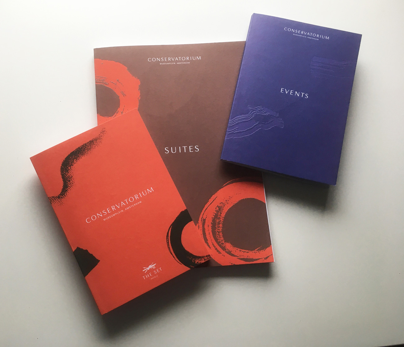 Het Conservatorium Hotel heeft gekozen voor deze techniek. Aan de hand van het ontwerp zijn wij aan de slag gegaan. Bemonstering van geschikt papier en karton vond plaats. Papier voor de katernen, karton voor de omslagen. De keuze viel op de serie Muncan Polar Rough. Een designpapiersoort. Het ongestreken, zeer tactiele oppervlak geeft een mooie beeldweergave samen met een natuurlijk papiergevoel. Door de hoge opdikking is het mogelijk een lager gramgewicht papier te gebruiken, maar behoudt het papier de aangewezen dikte en stijfheid van het drukwerk. Het papier is bijzonder geschikt voor offset drukwerk.